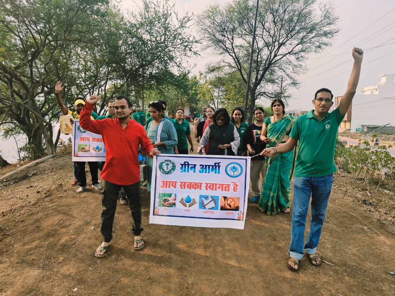 रायपुर। ग्रीन आर्मी की टीम गजराजबान्ध एवँ उसमें लगे वृक्षो को लगातार बचाने का प्रयाश कर रही है। ज्ञात हो संस्था वर्ष 2019 से गजराजबान्ध को बचाने के लिए के लिए निरंतर प्रयाश कर रही है। संस्था गजराज बांध को बचाने हेतू 9 नंवबर 2020 को बुढ़ागार्डन गेट से गजराज बांध तक पदयात्रा, हिन्दर्स्पोटींग मैदान में 11 दिवसीय धरना प्रदर्शन, 1000 पिपलों का वृक्षारोपण, छात्र-छात्राओं को गजराजबांध की जानकारी, वर्ष 2021 में 11 दिवसीय गणेशोत्सव, एक व्यक्ति एक धमेला, गहरीकरण, भव्य तिरंगा यात्रा एवं कवि सम्मेलन जैसे अनेक आयोजन संस्था द्वारा गजराजबांध को बचाने हेतू किया गया एवं यह प्रयास विगत 7 वर्षो से निरंतर जारी है इसी कड़ी में आज संस्था द्वारा गजराजबान्ध में लगाये गए वृक्षो को पानी दिया