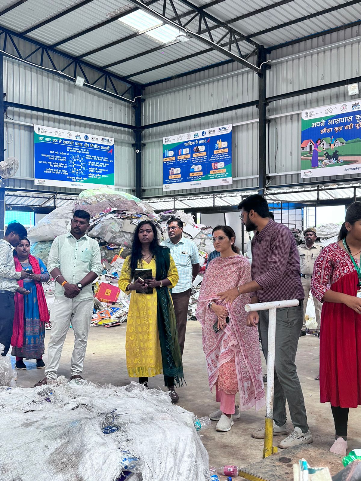 जगदलपुर 19 मई 2024 / छत्तीसगढ़ स्वच्छ भारत मिशन ग्रामीण की एमडी श्रीमती चंदन त्रिपाठी, पंचायत निदेशक श्रीमती प्रियंका महोबिया ने बुरूँद सेमरा में स्थित मटेरियल रिसाइकल फेसेलिटी सेंटर का निरीक्षण किया। इस अवसर पर बस्तर में प्लास्टिक सामग्रियों के रिसाइकल परियोजना को समझने और छत्तीसगढ़ के अन्य जिलों में समान परियोजनाओं को लागू करने की संभावनाओं का पता लगाने का प्रयास किया। दोनों अधिकारियों को एमआरएफ सेंटर में कचरा कलेक्शन, कचरा को अलग करने के साथ ही संस्था में संचालित गतिविधियों की जानकारी ली।