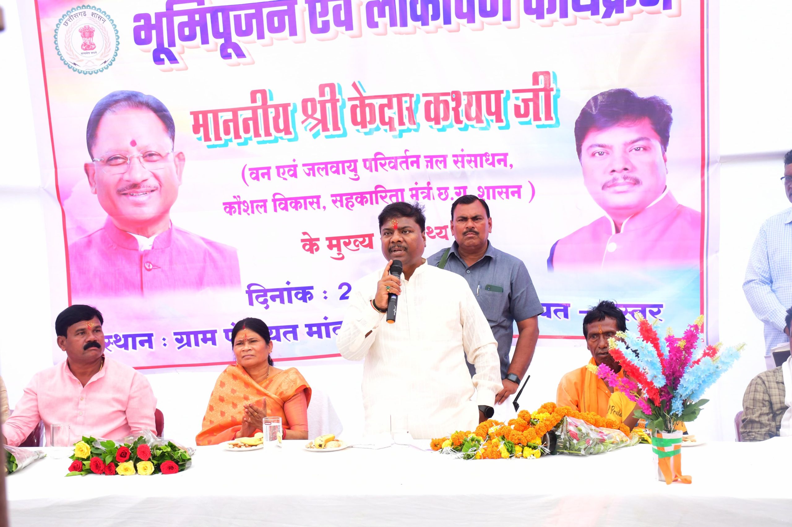 जगदलपुर 21 जून 2024/ वन मंत्री श्री केदार कश्यप ने बस्तर विकासखंड के ग्राम पंचायत मांदलापाल, सिवनी एवं सोनारपाल में विधायक निधि सहित अन्य मद से स्वीकृत विकास कार्यों में 10 करोड़ रूपए से अधिक लागत के 12 विकास कार्यों का किया लोकार्पण एवं भूमिपूजनका लोकार्पण एवं भूमिपूजन किया। इस अवसर पर उन्होंने कहा कि प्रदेश में नई सरकार के गठन के उपरांत मुख्यमंत्री विष्णुदेव साय के नेतृत्व में सरकार सांय सांय काम कर रही है। सरकार 3100 रुपये में क्विंटल दर से धान खरीदी कर रही है,तेंदूपत्ता 5500 रुपये मानक बोरा में खरीदी कर रही और बोनस अलग से दिया जा रहा है । इसके अलावा महतारी वंदन योजना का लाभ माताओं बहनों को मिल रहा है।सरकार की जनकल्याणकारी योजनाओं से सभी को लाभ मिल रहा है।