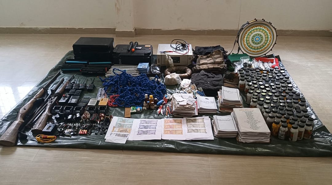 सुकमा:- सुकमा जिला पुलिस द्वारा चलाये जा रहे नक्सल उन्मूलन अभियान के तहत सफलता मिली है, नक्सलियों के द्वारा नकली नोट छापकर खपाने की फिराक की सूचना मिलने पर जिला बल, डीआरजी बस्तर फाईटर एवं 50 वी वाहिनी सीआरपीएफ की संयुक्त पार्टी विशेष नक्सल गस्त सर्चिंग हेतु ग्राम मैलासूर, कोराजगुड़ा, दंतेशपुरम व आस-पास के क्षेत्र की ओर रवाना हुए थे, कि अभियान के दौरान सुरक्षा बलों के द्वारा जंगल-झाड़ियों का सर्चिंग करते हुए आगे बढ़ रहे थे कि ग्राम कोराजगुड़ा के जंगल/पहाड़ी में नक्सलियों द्वारा सुरक्षा बलों की गतिविधियों को देखकर जंगल/पहाड़ी का आड़ लेकर भागने में सफल हुए। घटना स्थल की सघन सर्चिंग करने पर अलग-अलग जगहों पर नक्सलियों द्वारा छिपाकर रखे गये नकली नोट बनाने का उपकरण, कलर प्रिंटर मशीन, इन्वर्टर मशीन, कलर इंक एवं 50, 100, 200 व 500 रूपये के नकली नोट के सेम्पल तथा भरमार बंदूक, वायरलेस सेट, मैग्जीन पोच, नक्सली काली वर्दी कपड़ा एवं भारी मात्रा में विस्फोटक सामाग्री बरामद किया गया।