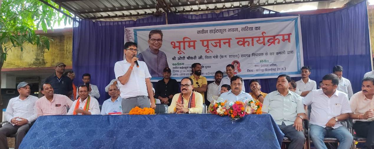 रायपुर, 28 जून 2024/वित्त मंत्री श्री ओ.पी. चौधरी ने सारंगढ़-बिलाईगढ़ जिले के सरिया में गुरुवार शाम को हायर सेकेण्डरी शाला के नवीन भवन निर्माण कार्य का भूमिपूजन किया। यह भवन करीब 1 करोड़ 19 लाख रुपए की लागत से बनेगा। इस मौके पर पूर्व विधायक डॉ. जवाहर नायक, श्री जगन्नाथ पाणिग्राही, नगर पंचायत अध्यक्ष श्री स्वप्निल स्वर्णकार सहित बड़ी संख्या में गणमान्य नागरिक उपस्थित थे।