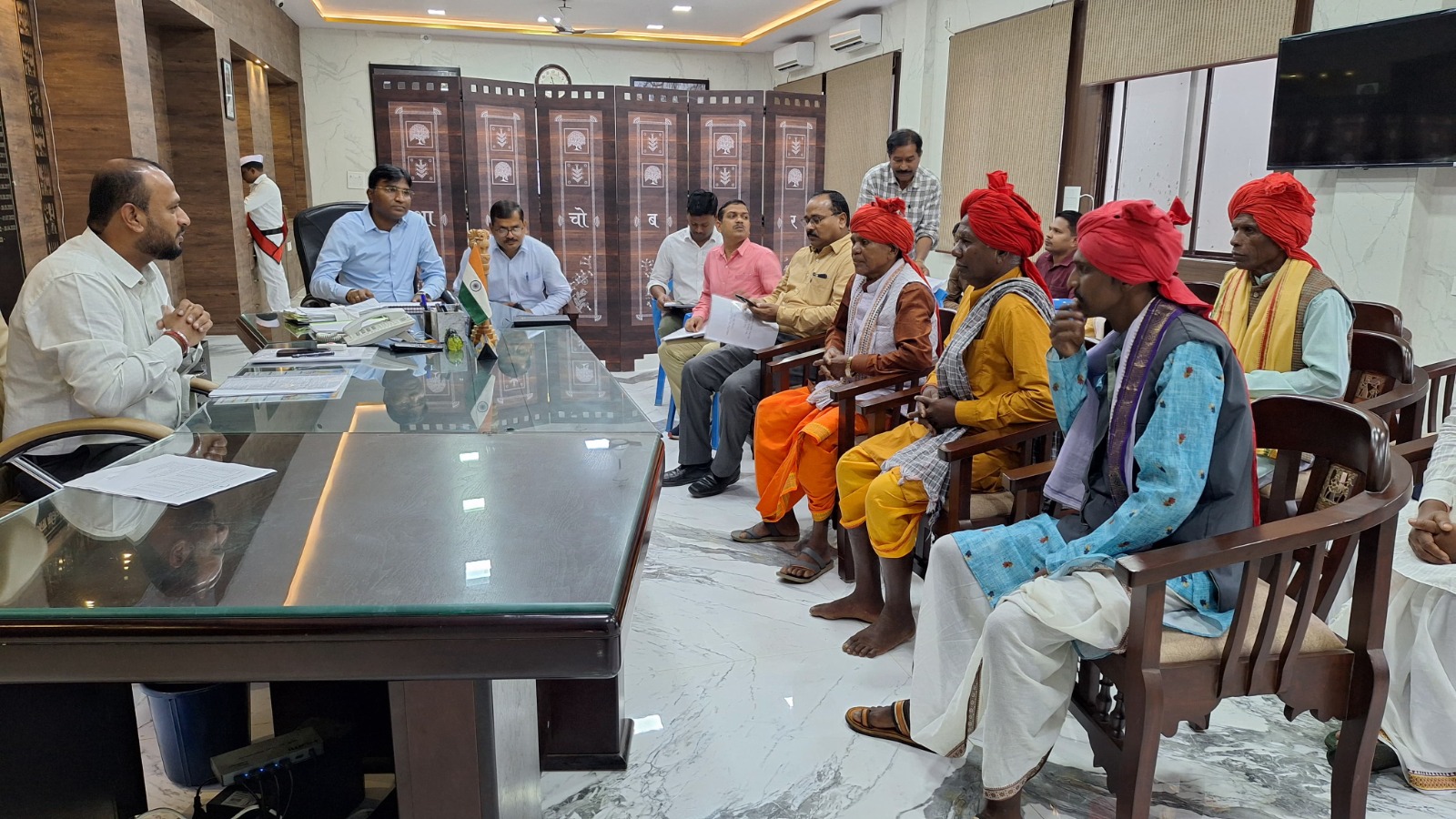 जगदलपुर, 26 जुलाई 2024/ कलेक्टर श्री विजय दयाराम ने बस्तर दशहरा की तैयारियों के लिए मांझी चालकियों से चर्चा की, बस्तर दशहरा के शुरुआत पाट जात्रा विधान से होती है, इस वर्ष 4 अगस्त को पाट जात्रा की रस्म अदायगी की जाएगी। इस अवसर पर जिला पंचायत सीईओ श्री प्रकाश सर्वे, वन मंडलाधिकारी श्री उत्तम गुप्ता, अपर कलेक्टर श्री सी पी बघेल, एसडीएम श्री भरत कौशिक, तहसीलदार जगदलपुर एवं सदस्य सचिव बस्तर दशहरा श्री रूपेश मरकाम सहित अन्य अधिकारी उपस्थित थे।