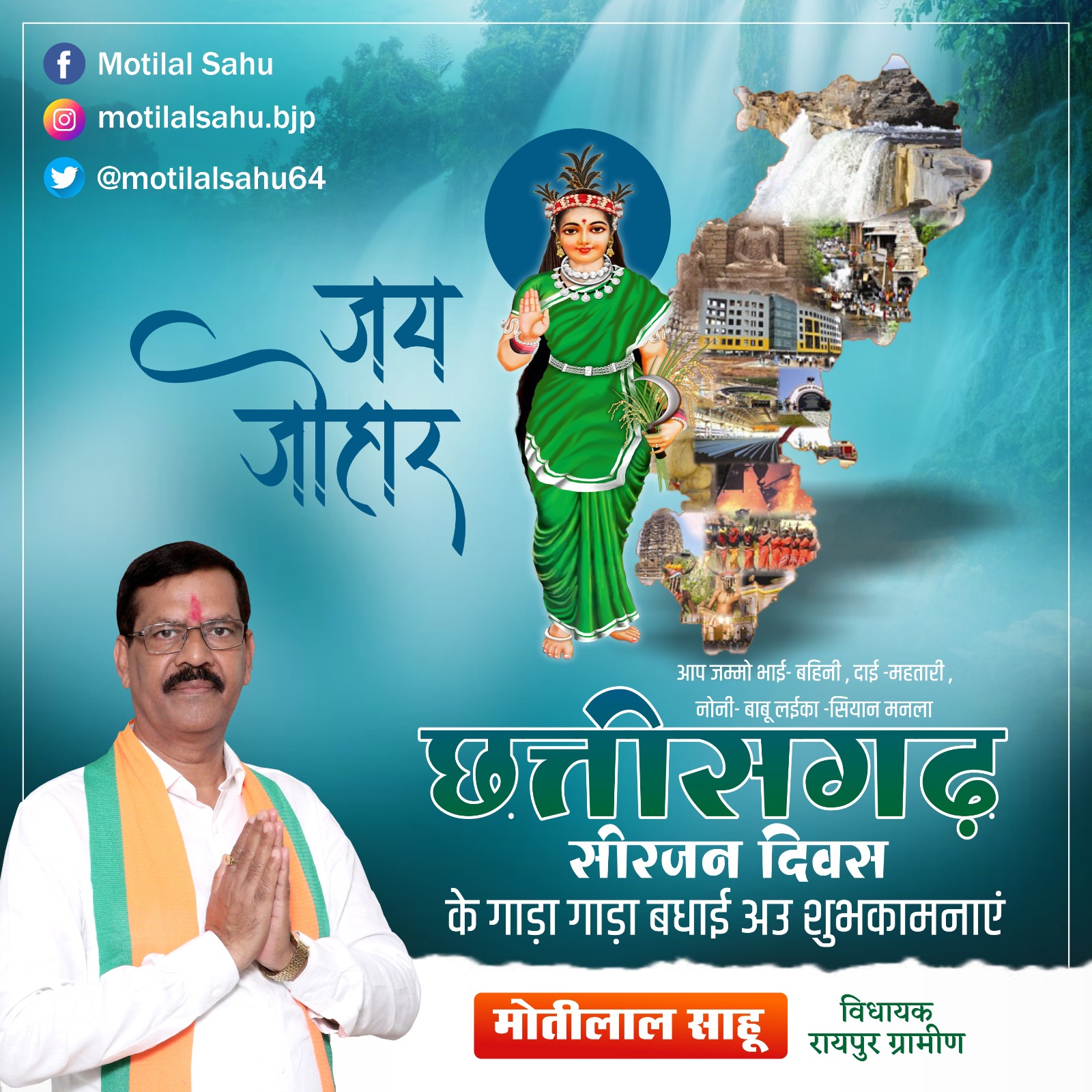 *छत्तीसगढ़ राज्य स्थापना दिवस के 24वीं बच्छर के जम्मो प्रदेशवासी मन ल गाड़ा-गाड़ा बधाई।