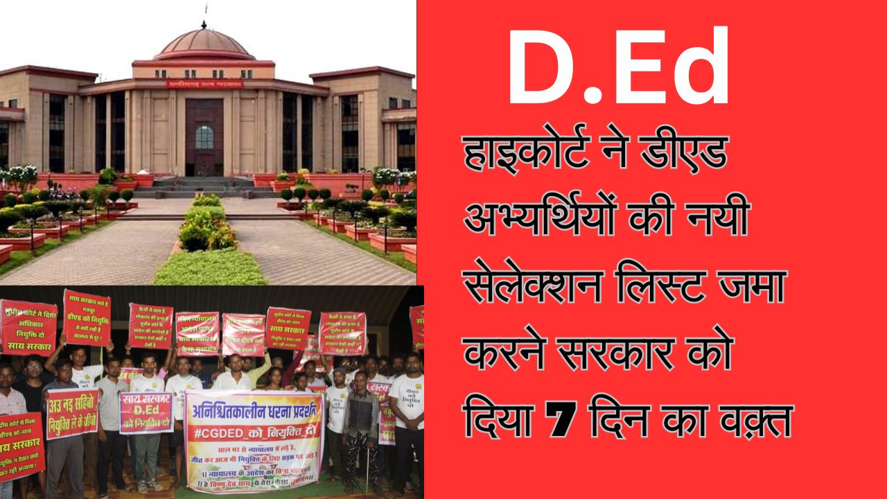 विडियो कांफ्रेसिंग के माध्यम से जोड़ा था. हाईकोर्ट ने 21 दिनो के भीतर डीएड का नया सेलेक्शन लिस्ट तैयार करने और डीएड अभ्यर्थियों की नियुक्ति प्रक्रिया आगे बढ़ाने का आदेश दिया था ।