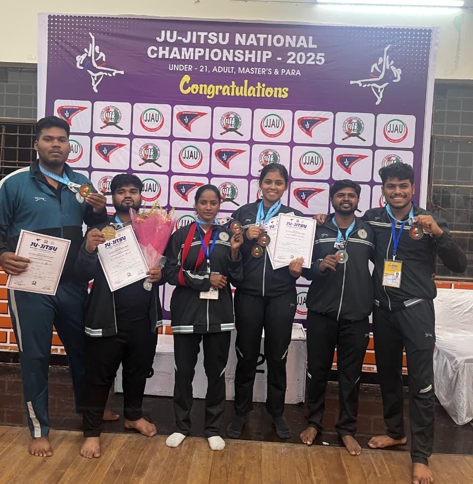 उत्तर प्रदेश के सहारनपुर में 9 से 12 अक्टूबर तक आयोजित सीनियर राष्ट्रीय जूजित्सु प्रतियोगिता में छत्तीसगढ़ से 40 खिलाड़ियों ने सीनियर/एडल्ट/मास्टर आयु वर्ग में प्रतिभागिता की जिसमें छत्तीसगढ़ दल द्वारा कुल 21 पदक प्राप्त किए जिसमें 5 स्वर्ण , 4 रजत एवं 12 काश्य पदक शामिल है । इसमें रायपुर के खिलाड़ियों ने उत्कृष्ट प्रदर्शन करते हुए 4 स्वर्ण , 1 रजत एवं 4 काश्य कुल 9 पदक प्राप्त किए । *स्वर्ण पदक* –