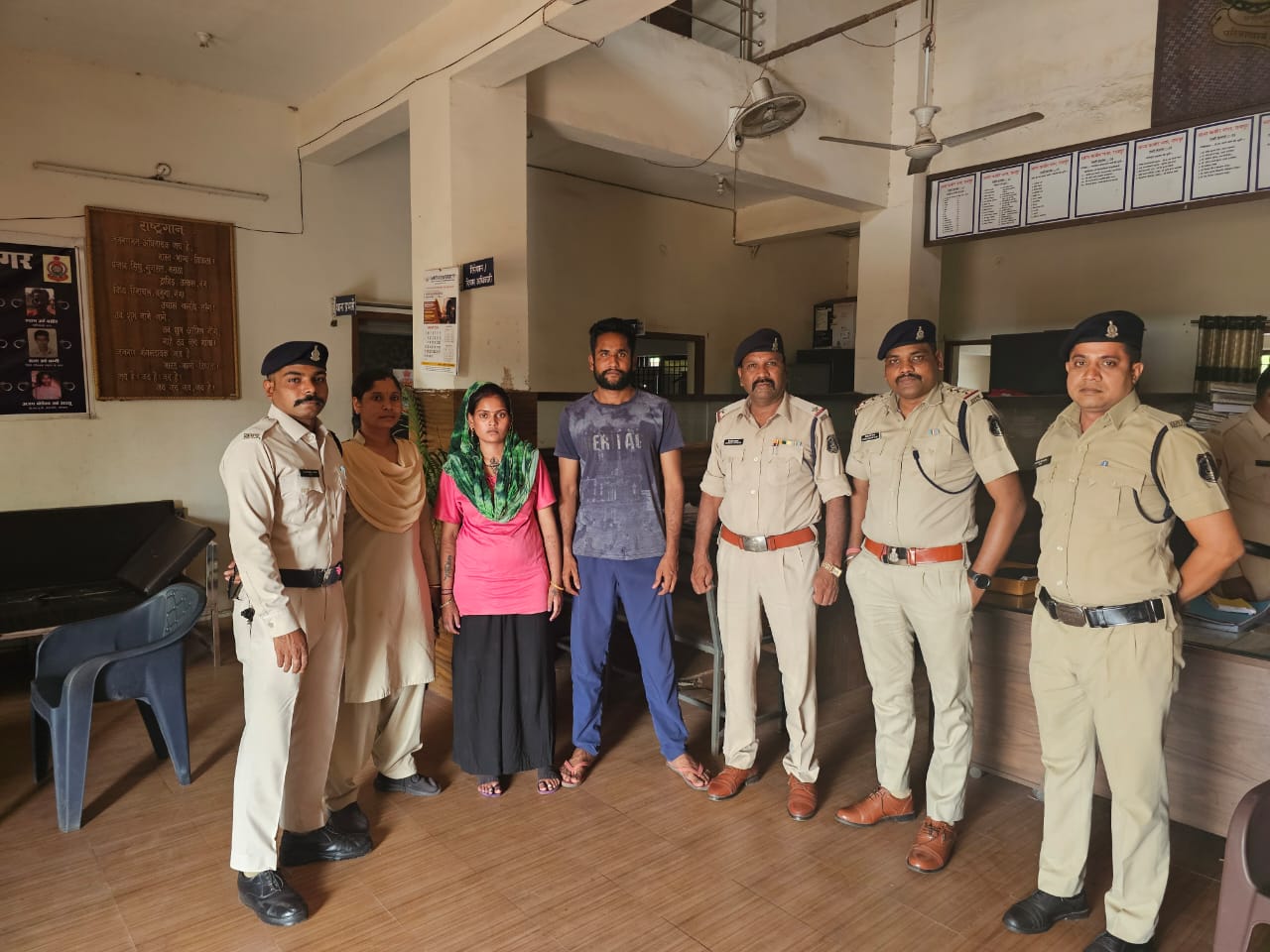 इंडियन बाज़ न्यूज़…..मामले का संक्षिप्त विवरण इस प्रकार है कि दिनाँक 21.10.23 को नशे के विरुद्ध थाना कबीर नगर में आरोपियों सोहेल खान,मुस्कान रात्रे,और प्रियेश उर्फ़ प्रिंस यदु के खिलाफ नारकोटिक्स एक्ट के तहत अपराध पंजीबद्ध कर विवेचना की जा रही थी. घटना दिनाँक से ही आरोपिया और उसके पति फरार होकर पुलिस से बचने के लिए लुक छुप रहे थे.जिस पर जिले के वरिष्ठ पुलिस अधीक्षक श्री संतोष सिंह के द्वारा नशे के विरुद्ध प्रभावी और सार्थक एवं कठोर कार्यवाही हेतु निर्देशित करने उपरांत अतिरिक्त पुलिस अधीक्षक श्री दौलत राम पोर्ते और नगर पुलिस अधीक्षक श्री अमन कुमार झा(IPS) के कुशल मार्गदर्शन में तथा टी आई रविन्द्र यादव थाना प्रभारी कबीर नगर के नेतृत्व में और टी आई मनोज नायक थाना प्रभारी मौदहापारा के विशेष सहयोग से आरोपीगण के कबीर नगर में होने की सूचना पर बिना समय गवांए थाने के स्टाफ के साथ छिपने की सम्भावित स्थान को चिह्नित कर घेरा बंदी कर दबिश दिया जहां पर आरोपीयो के द्वारा भागने की कोशिश करते हुए खुद को नुकसान पहुंचाकर पुलिस वालों को फंसा देने की धमकी देने लगी किन्तु इस बार पुलिस बल पर कोई प्रभाव नहीं पड़ता देख अंततः पुलिस द्वारा अभिरक्षा में लेने में कामयाब हुए. इसके पूर्व में दबिश देने पर कुत्ते के भय और बच्चे को फेंक कर तथा गैस सिलेंडर खोलकर डराने का प्रयास कर चुकी थी किन्तु इस बार कोई चाल काम नहीं आया. और दोनों आरोपियों के विरुद्ध कड़ी कार्यवाही करते हुए जेल भेजा गया।